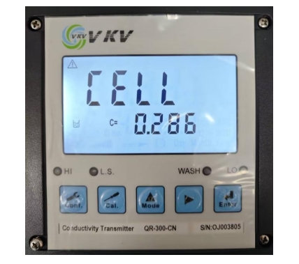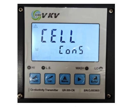 3. 通過(guò)▲ 或 ? 鍵來(lái)選擇模式,CELL 為電極系數(shù)設(shè)定模式,Std 為標(biāo)準(zhǔn)液校正模式。選擇 CELL 模式,按 Enter 鍵確認(rèn)進(jìn)入