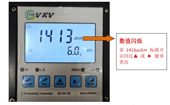 5.將電極放入 1413us/cm 標(biāo)液中,點(diǎn)擊Enter 鍵,開(kāi)始校正。